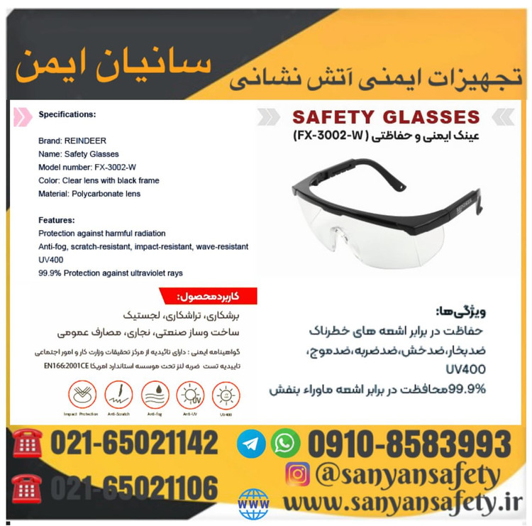 عینک ایمنی بغلدار دسته کشویی ریندرREINDDER FX3002w ( دارای تاییدیه از مرکز تحقیقات وزارت کار )