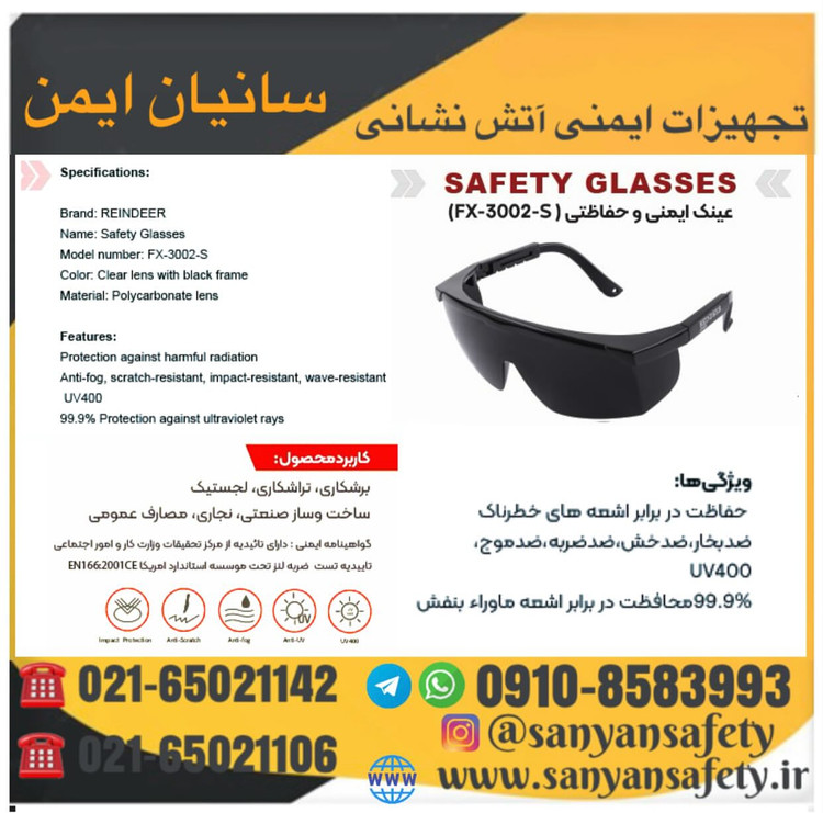 دارای تائیدیه تست ضربه لنز تحت موسسه استاندارد آمریکا EN166:2001CE