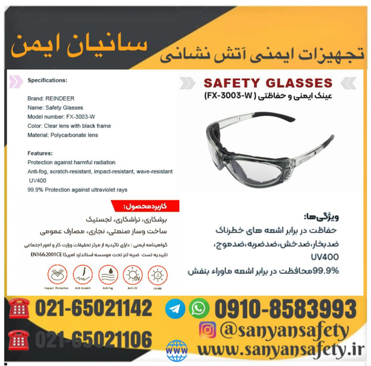 عینک ایمنی مهندسی تمام فریم ریندر REINDEER FX-3003W ( دارای تائیدیه از مرکز تحقیقات وزارت کار )