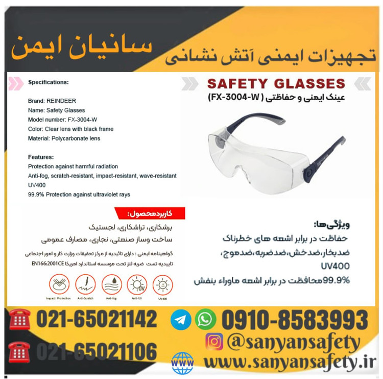 عینک ایمنی سنگزنی دسته جغجغه ای ریندر REINDEER FX-3004w ( دارای تاییدیه از مرکز تحقیقات وزارت کار )