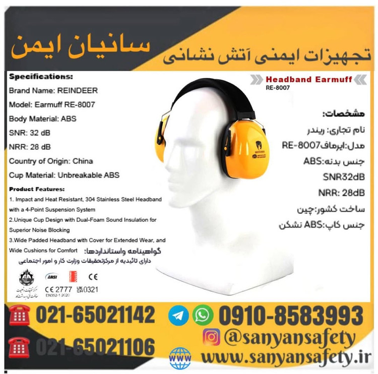 گوشی ایرماف ایمنی صداگیر ریندر REINDEER RE8007 ( دارای تائیدیه از مرکز تحقیقات وزارت کار )