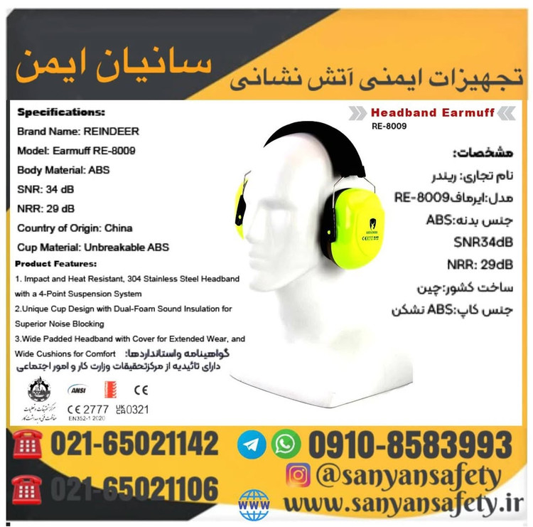 محافظ گوش ایمنی صداگیر ریندر REINDEER RE8009 ( دارای تائیدیه از مرکز تحقیقات وزارت کار )